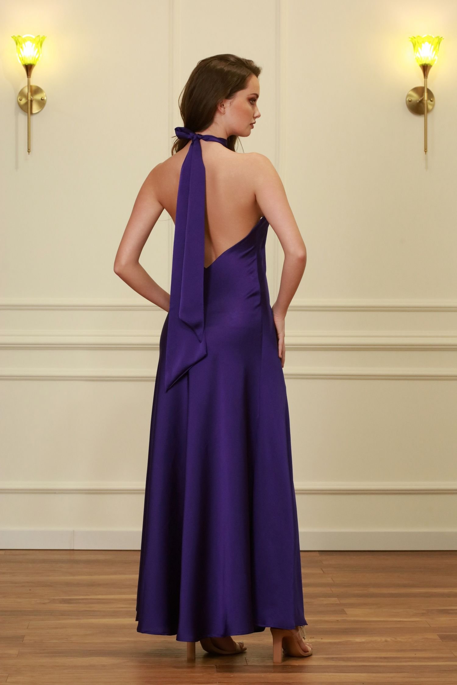 Made in Greece, the Purple Satin Halter Neck Maxi defines modern elegance. We wanted to create an essential capsule of designs that flatter and move with your body. A standout piece is this halter neck maxi, crafted from ultra-luxe fluid satin cut on the bias. This technique provides a spectacular drape, allowing the fabric to delicately caress your silhouette with an effortless feel.